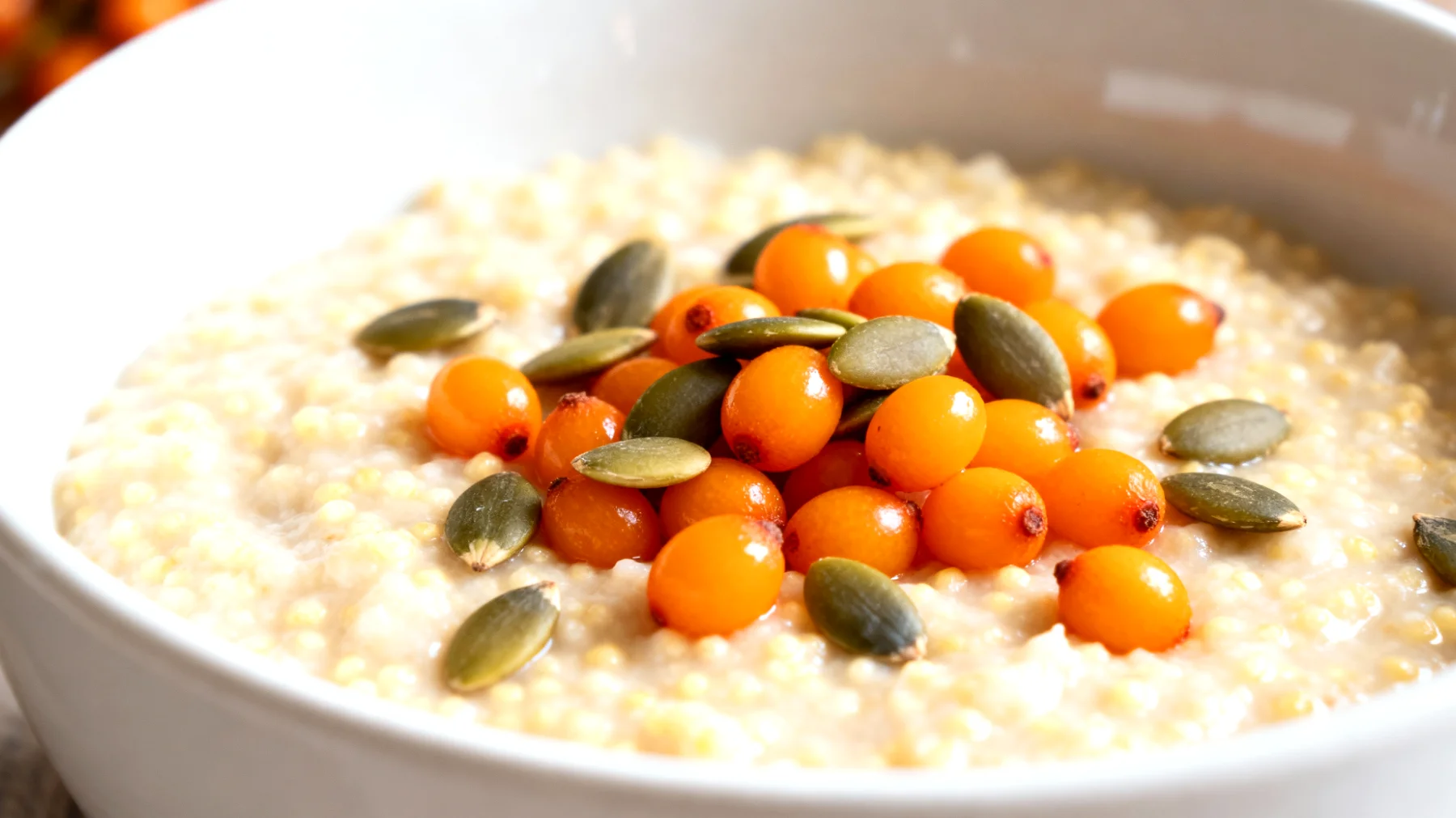 Der Wechsel zwischen den Jahreszeiten stellt für unseren Organismus eine besondere Herausforderung dar. Veränderte Lichtverhältnisse, Temperaturschwankungen und unterschiedliche Anforderungen an das Immunsystem erfordern eine angepasste Ernährung. Hirse-Porridge mit Sanddornbeeren und Kürbiskernen bietet genau die Nährstoffkombination, die in diesen Übergangsphasen unterstützend wirkt. Die wärmende Qualität des Porridges, kombiniert mit immunstärkenden Vitaminen und regenerationsfördernden Mineralstoffen, macht dieses Gericht zu einem idealen Begleiter vom Herbst in den Winter oder vom Winter in den Frühling.